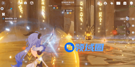 3. 柱子破了之后主c输出一波,视频里面是刻晴重击a循环,我的80级刻晴面板很低,练度高点的c都可以。