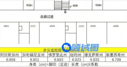 A504号房内光脚的脚印,可以先根据脚印套公式及相关系数算出足迹对应身高。确定系数很关键,根据线索死者在死前曾接到一个备注为“NY-2”的电话便上楼,能够指示女按摩员的人除了上司,那便是客户了。根据表内数据,不难推测“NY-2”中“NY”是“New York”缩写,客户是纽约人,而2则可推测为是死者为了区分不同客户的编号,由此代入纽约州数据6.923。