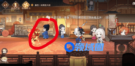 第二个缘分之火灯笼:君心似我心,具体位置是战斗1/3的蓝袍小男人
