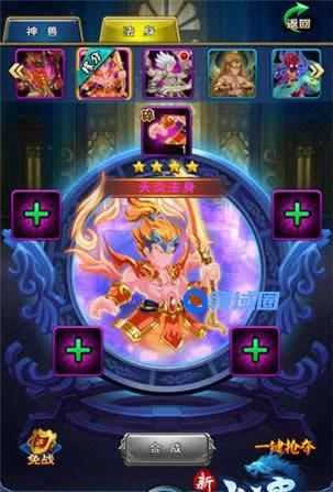 通过【一键抢夺】来合成神兽法身超级方便,是讨厌琐碎点点点的玩家的大福音,主角等级45级或VIP7即可开启。