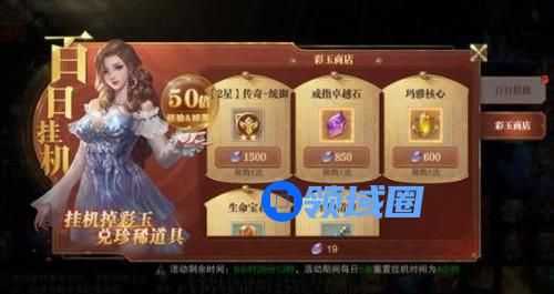 百日挂机过程中将随机掉落彩玉,使用彩玉道具可增加彩玉货币。