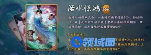 然而在爱与美化身的美誉背后,洛神首先是人皇伏羲之女,拥有足以掌管一方的强大神力。与洛神相关的SSR拓印“洛水惊鸿”与R拓印“鱼舞凌波”,不仅本身增益效果出众,在“花开时节动京城”活动中还可以实现基础效果翻倍,并增加相关道具的掉落数量。