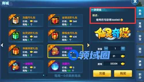 铜钱是个好东西,甚至可以说是必要之物。特别是在游戏初期,玩家技能的升级、购买物品都要使用到铜钱,而游戏初期因为玩家等级不足,副本、支线暂未开启。但是主线奖励的铜钱数又不够多。因此,铜钱是前期重要的货币。而在商城热卖中,21个元宝即可兑换366060铜钱,不可谓不物超所值。