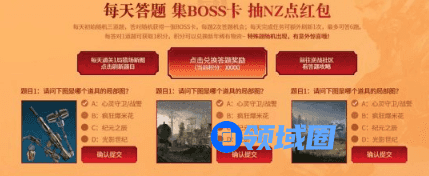 第一种:通过答题获得BOSS卡片,每天可直接获取3个题目,完成通关猎场任务可刷新一次,每日最多6次,每个题目有两次机会回答,对于熟悉游戏的玩家,这些题应该无法难倒你们吧!不过万一遇到不确定的答案,也不要紧,论坛网友可以帮助你答题,直接活动网页点击【前往逆战社区答题攻略】即可获取正确答案。