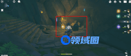 开启第三个宝箱后一路再往山洞里走,就能到达这个秘境的最深处,第四个宝箱就在中间那棵大树的右边。