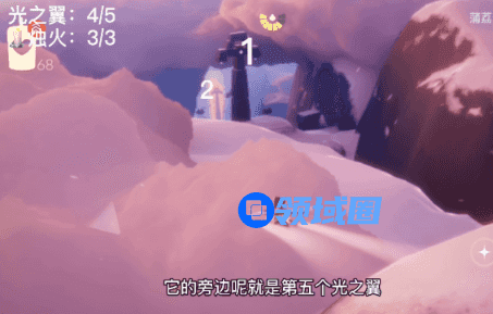 在2号蜡烛旁边有飞船(俗称1号线)坐1号线到终点的小塔,塔尖上就有第3号光翼(由于塔附近有下压气流,推荐蹭云先飞上天,然后再落下),拿完这个光翼,我们就要去坐2号线了。