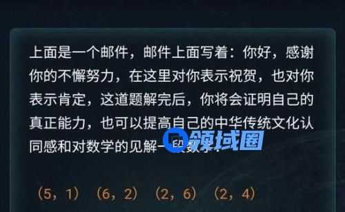 上面是一个邮件,邮件上面写着:你好,感谢你的不懈努力,在这里对你表示祝贺,也对你表示肯定,这道题解完后,你将会证明自己的真正能力,也可以提高自己的中华传统文化认同感和对数学的见解一段数字: