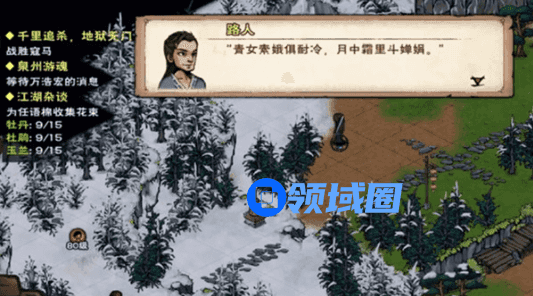 大雪山(5.11)对话路人,选择【大雪山】,选择【青女】,选择【为何叹气】,选择【异香】,选择【理解】,选择【答应】