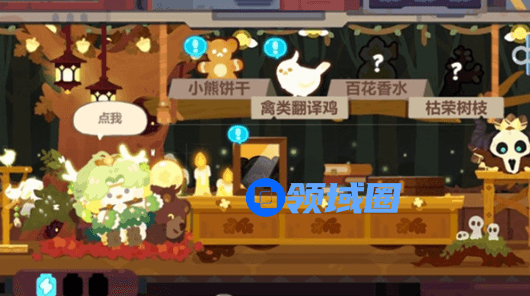 小熊饼干:专门为座下的小熊烘制的饼干,每袋装了各种各样的花式。不过德鲁伊自己偶尔也会吃一些充饥,每当此时,小熊都会斜着眼看她。