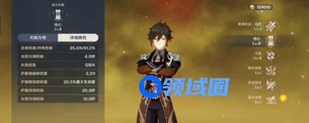 8级e可以提供角色20.5%最大生命+2311的护盾,因为钟离的护盾吸收所有属性150%的效果,所以最终还要×1.5,如果有双岩还要厚15%,我现在的血量不计算双岩可以提供17262的护盾,可以顶一个主c大半管血了,我现在2400攻击8级大招琴,一个大招瞬间治疗也不过2w。而且这个护盾持续时间很久,释放得当,几乎可以全程覆盖。此外护盾还有一个治疗无法做到的功能,抗打断能力,这也可以进一步提升输出的生存。
