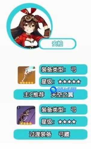 蓄力痛苦流安柏武器首推阿莫斯之弓,对于蓄力攻击的增幅巨大,天空之翼也可以使用。四星用可制作的试做澹月,有条件的可以弄一把加暴击的苍翠猎弓,弓藏和钢轮弓就不要使用了。