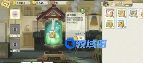 饲料需要在加工台制作,加工台虽然只能制作饲料,想要获得牛奶、羊毛、鸡蛋、兔毛都需要给动物喂饲料。不同饲料喂食后效果不同,普通饲料只能激发动物的产出状态。