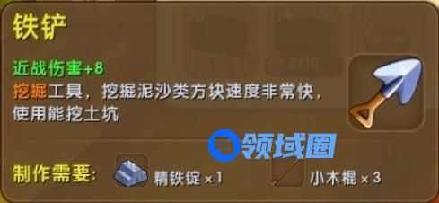 挖掘工具,挖掘泥沙类方块速度非常快,使用能挖土坑。