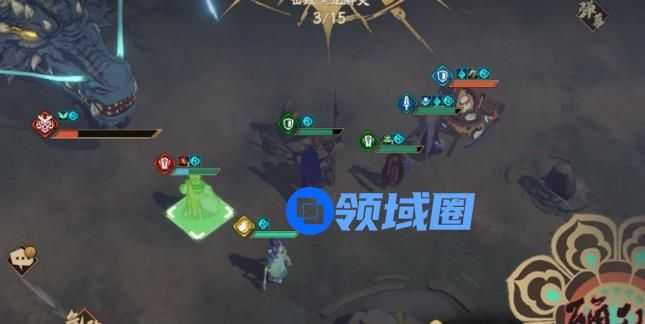 封铃笙给夏侯仪加血,璇玑走到这个位置用雷引打鬼卒传到冰璃或者古伦德身边,冰璃去砍红色小怪,古伦德待机
