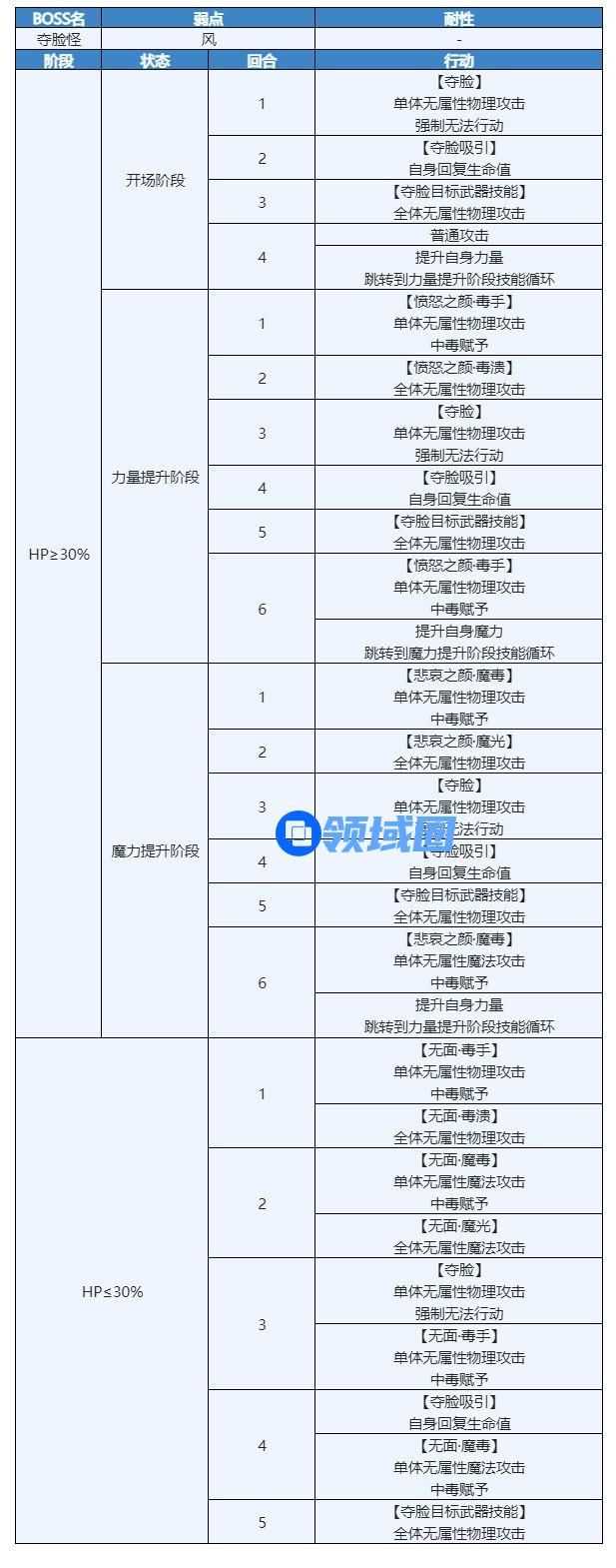 1、BOSS会使用夺面技能,使一个角色无法行动,第三回合会使用该角色武器相关技能。