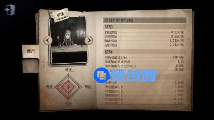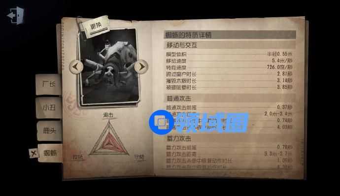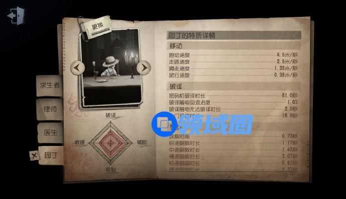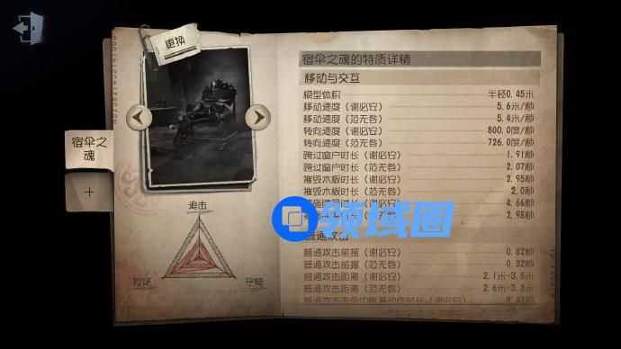在笔记本中每个角色页右上角增加了角色基础数据公开部分的入口,可以点击进入后可以查看角色的基础数据。包括显示求生者能力的移动、破译、交互、治疗速度等数据,监管者移动、攻击、交互等相关等数据。