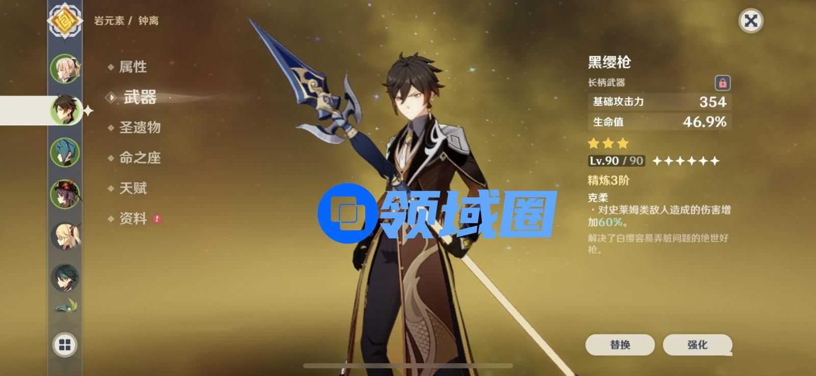 站场物理输出型武器绿枪或护魔,因为目前没有加物理的5星武器所以没太大意义,虽说钟离是六边型战士是个优点但也是个缺点。没有足够的银子我是不建议用钟离来打输出的,虽然伤害颇为不俗,但护盾机制关系护盾是必须常驻的但因为是物理,角色总生命值不会太高导致护盾也不会太厚,对付一些攻击力不高的还好说可一旦遇到一下破盾的怪的时候就极其难受。总结:圣遗物必须深造,武器为5星首选。