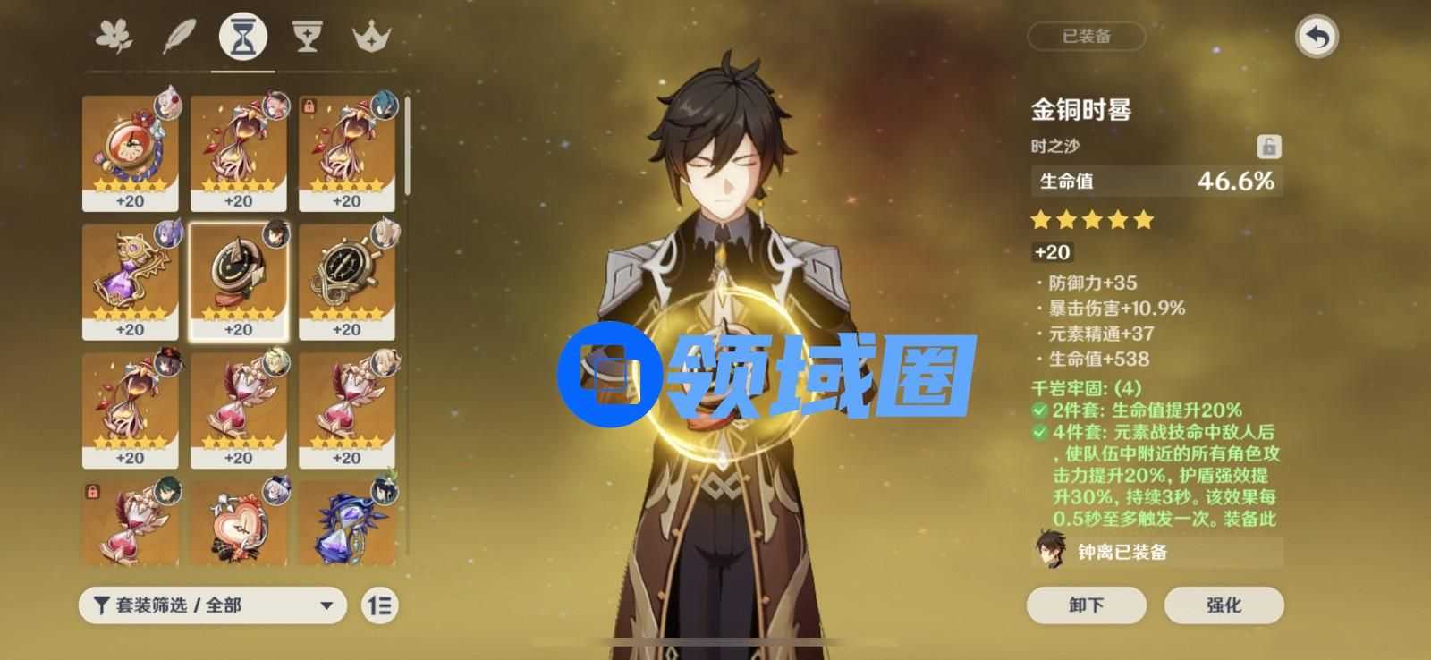 大招流:宗室一套或二宗二岩伤套,岩伤杯、攻击生命沙漏都可以就看是否在意护盾强度和岩盾减抗了。副词条和物理的一样并无太大区别。