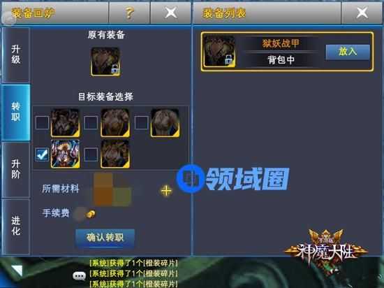 ②装备转职:转职可以把装备转换成其他职业的对应部位,部分高等级战系装备和橙色品质装备(不含充值赠送的橙色装备)现在可以转换成其他职业。