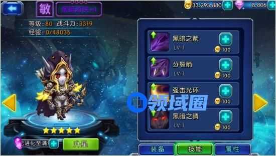 后排强力输出,【黑暗之箭】在射死敌人的时候还能召唤骷髅,攻击力又极强,当之无愧的神技,所以必须优先选择升级,【强击光环】增加队友和自己攻击,不多的增强攻击力技能之一,升级第二选择,其他技能可中后期比较富裕了再升级,提升整体水平。