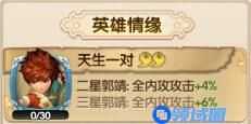 这其中黄蓉和郭靖是有英雄情缘的,两人是天生一对,郭靖对黄蓉的加成是郭靖每提升一星全内功攻击增加百分之2,黄蓉对郭靖的加成是黄蓉每提升一星全生命增加百分之2。第一张图中的阵容还出现了2星的欧阳克,欧阳克对黄蓉的情缘则是痴心妄想,黄蓉每提升一星全生命值增加百分之2。