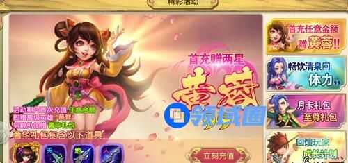 第二个就是黄蓉,黄蓉的获得方法其实也不难,随便充任意金额就可以获得黄蓉,外加天地人三属性紫色武器各一把,游戏中最低可以充6块,如果玩家觉得只充6块不怎么值得话,可以买一张月卡,游戏中购买月卡十分合适,一张月卡卖28块,立刻获得280钻且每天领150钻,这样下来就等于150x30+280=4780钻,如果按照购买钻石首充赠钻的情况下,折合人民币也是200来块,而且还会提升至尊等级,提升至尊等级会有许多福利,所 以性价比非常高。这样的话黄蓉就会直接获得。如果想要不花钱的话,那就需要拼人品,靠着十连抽去弥补第二个位置。