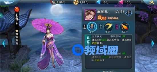南拂玉的出场技-雨露芙蓉:造成9段158%的火系伤害,造成10秒灼烧效果。在这10秒内足够各位少侠使用出辜铁心的出场技。