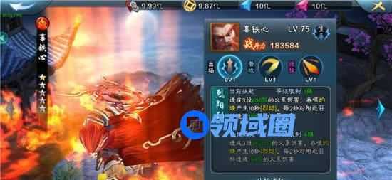 心法-噬天攻:战斗中主角对生命值低于40%的敌人,伤害提高15%。当然这只是1级心法的效果。辜铁心的心法可以让使用者越战越勇,在双方实力相当的情况下,装备了这个心法完全是可以立于不败之地。