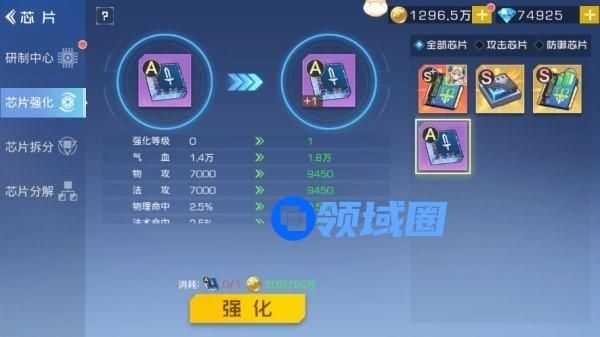 只有A级及以上等级的芯片才能进行强化,芯片强化A级及以上等级的芯片拥有技能效果。橙色强化不仅能提升芯片属性还能加强技能效果。当芯片强化到+3、+6、+9时,芯片能获得额外技能效果。