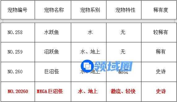 下面,我们将重点了解一下MEGA巨沼怪这只宠物~
