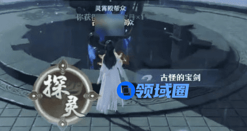 2、找到古怪的宝剑之后,靠近点击右侧的交互键,会出来下一步的任务;