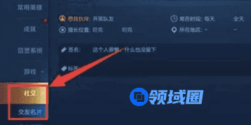 2、进入资料界面后点击界面左侧的社交交友名片标签。