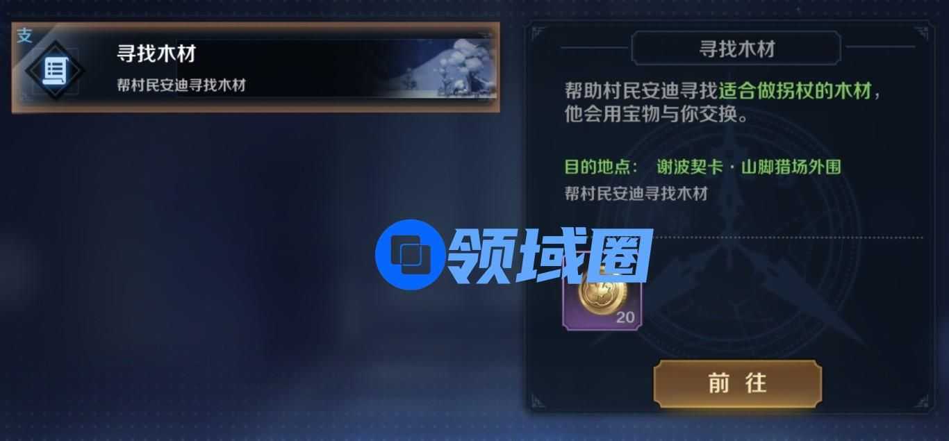 1、玩家可以根据任务的提示前往【谢波契卡·山脚猎场外围】。