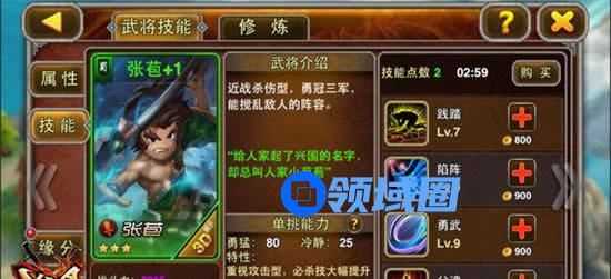 《X三国》的绿色武将都是身兼数职的能手,张苞也不例外!无论是随从还是寻宝,张苞都是代表性的武将!也就是说,稍加提升一下张苞的实力,就能在各种场合,为主公们立下汗马功劳,灰常好用的说!
