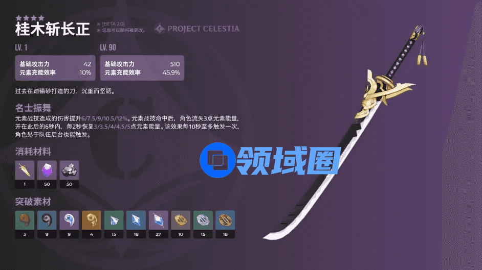 桂木斩长正,4星双手剑。510基础攻击力,45.9%元素充能效率,被动名士振舞:提升元素战技伤害,并在战技命中敌方后可获得元素能量回馈。适用角色:早柚。该武器提升战技伤害影响不大,主要是看中其能量回复。