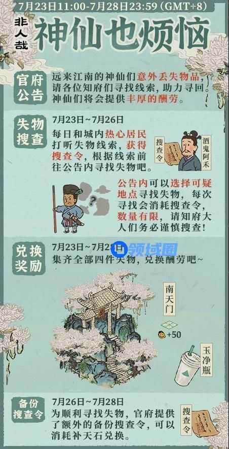 - 【非人哉 • 神仙也烦恼】限时任务开启!解决神仙们的烦恼,收集关键道具即可免费兑换全新建筑【南天门】;