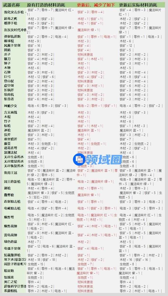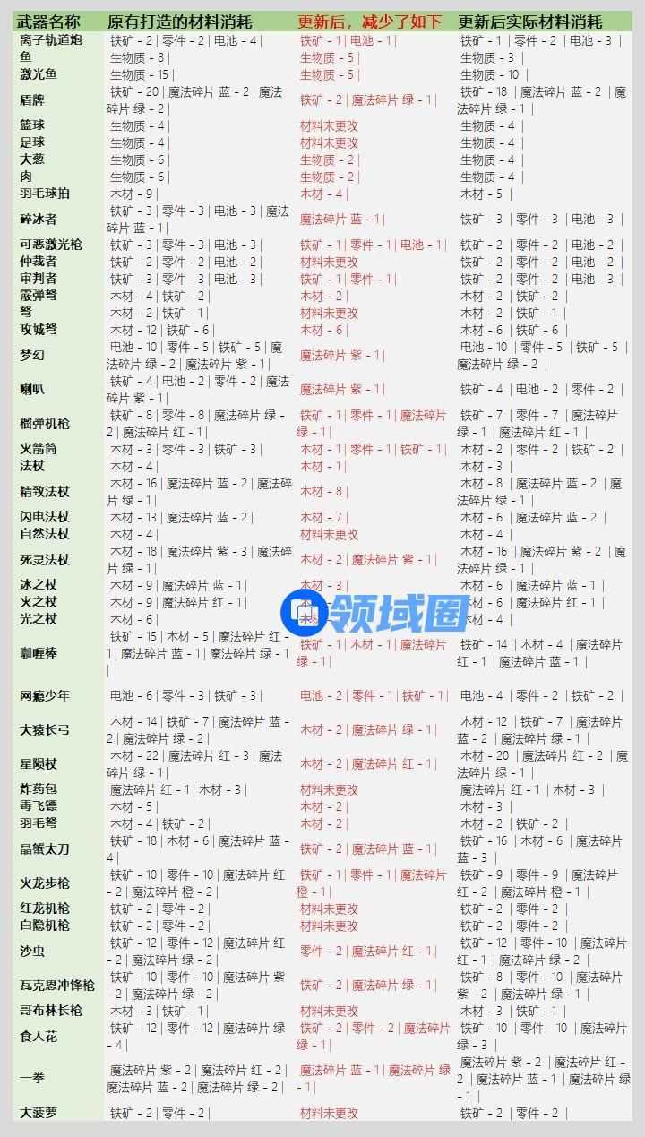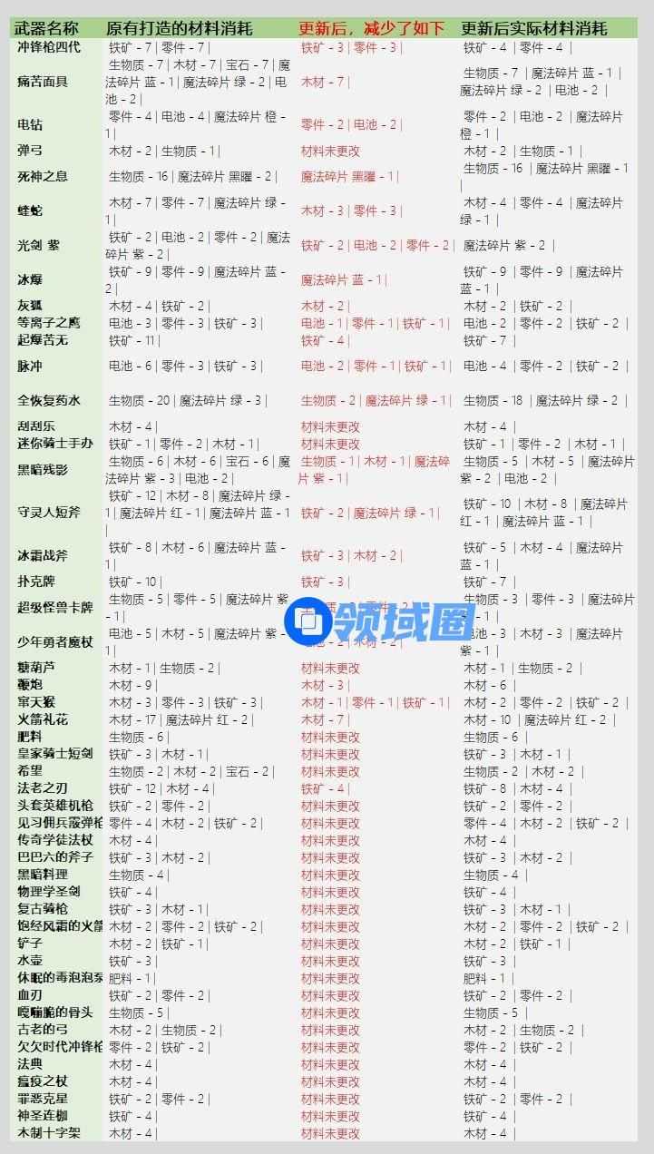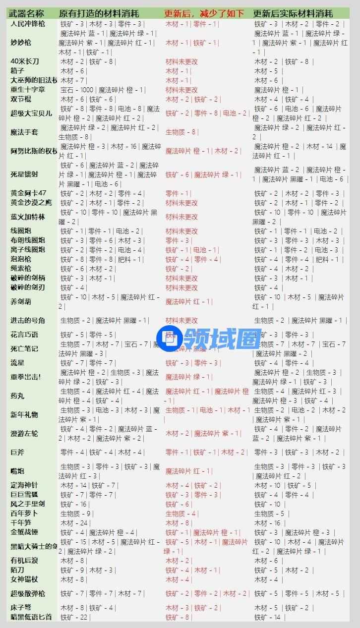 【元气骑士3.2.1武器锻造材料表】