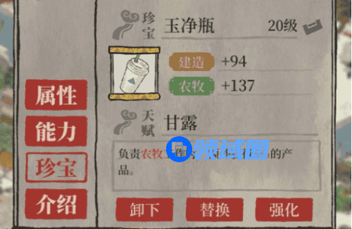 3、使用满级的珍宝好一些,(包括蓝色的珍宝)玉净瓶没办法达到满级的话建议不要给农牧为特的居民用。给玄奘也可以因为一般都用他做农牧,专属应该不会出毕竟他也不出观音大士。