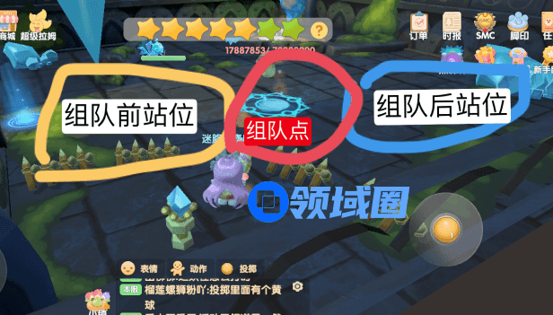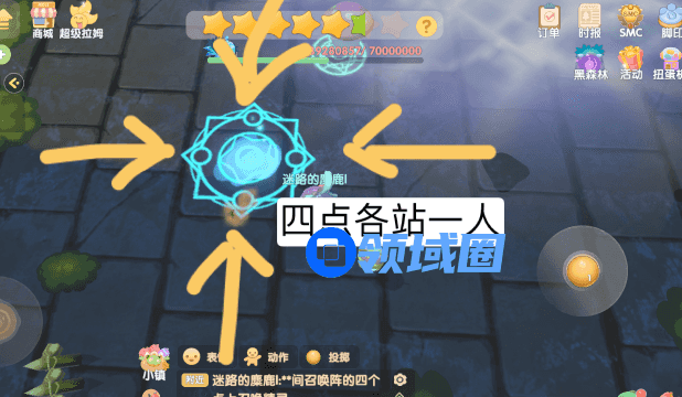 由于是世界boss随机现场组队,建议大家一进来在初始位置攻击冰蜂,中间蓝色的是木精灵召唤阵,需要4人站在4个点才可以召唤,每人每天只能组队召唤一次,所以组队后可以站在里侧位置攻击冰蜂,这样可以达到效率最大化。