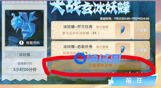 在击倒一段时间后,玄冰妖蜂会重新苏醒。注:冰刺每天只能捡10个,每天打两次冰蜂就OK,不要一直打