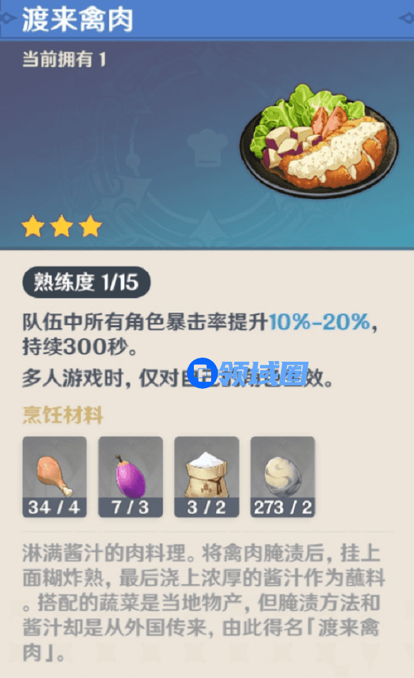 在长次演示之后,我们也该展现一下我们作为旅行者的好手艺了,学习长次给我们的食谱「渡来禽肉」,用长次家的锅来做一下这道美味吧。
