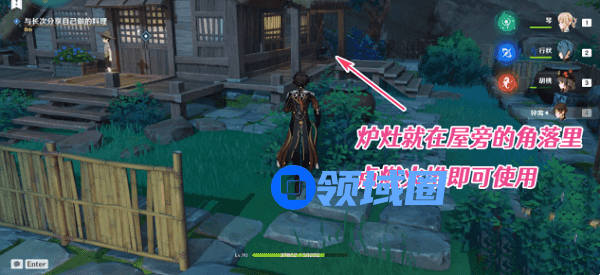 炉灶的位置就在长次家屋子后面,收集好食材,用火元素角色点燃柴火,直接用这里的锅进行烹饪即可。