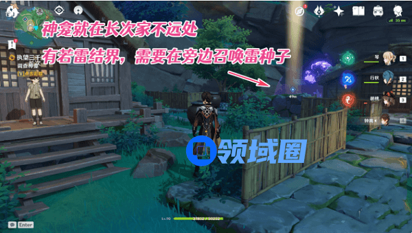 跟随任务目标指引,去长次所说的神龛看看吧。神龛位置如下图所示,位于一个若雷结界中,在旁边的雷樱枝条召唤雷种子后即可进入调查。