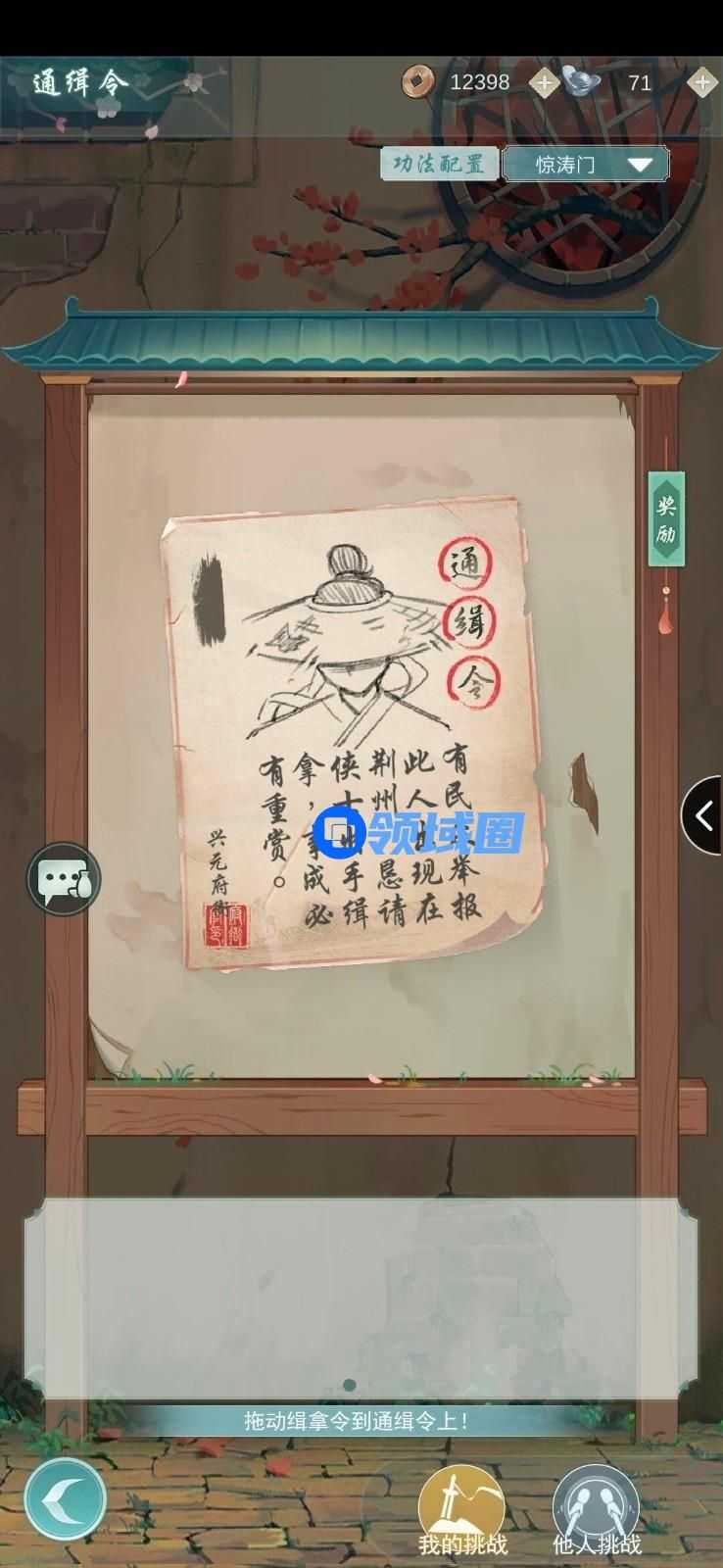 1.出游概率获得通缉令,也可以通过钱庄概率获得,通缉令可以在侠道右下角揭榜。