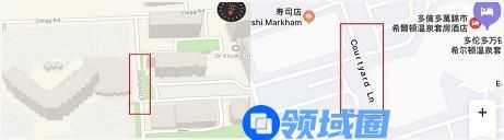 而我们要找的道路便为两栋建筑之间道路,名为:Courtyard Ln