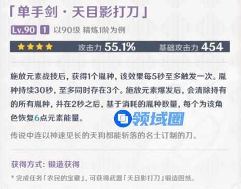 图纸获取方法:完成稻妻地图世界任务「农民的宝藏 」,就能得到天目影打刀图纸。