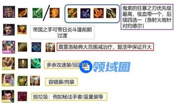开局抢攻速/腰带,攻速是为主c帝国之斧装备,腰带则是可以合日炎斗篷更好的连胜过渡。