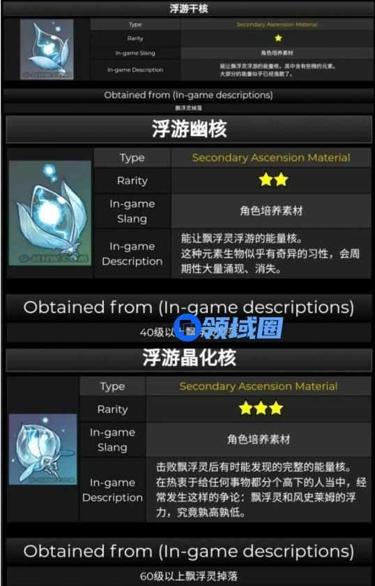 『浮游干核』、『浮游幽核』、『浮游晶化核』则是由飘浮灵掉落。