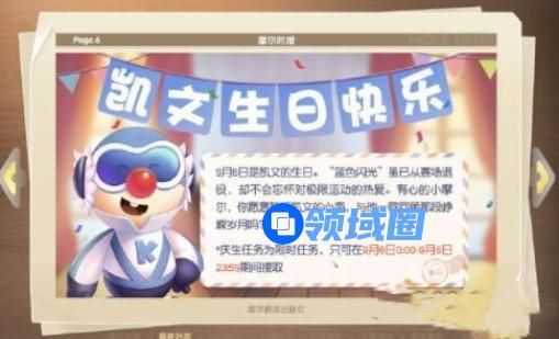 庆生任务只可在9月6日0:00-9月6日23:59 期间接取。