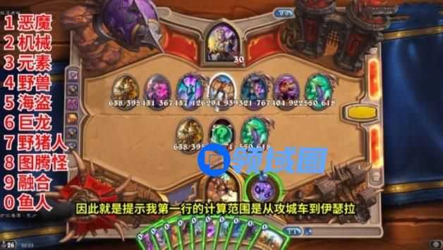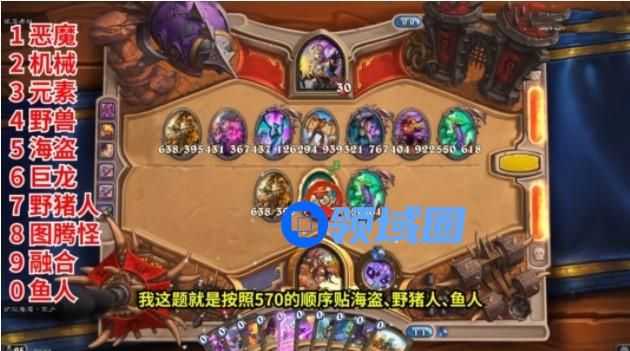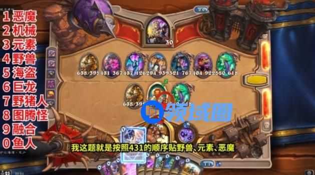 接着是计算范围内随从血量之和,然后取后三位数。继续以我这题举例:395+367+126+939+767+922+618=4134,取后三位数也就是134,然后找到1、3、4对应的种族牌,从个位数到百位数的顺序开始输入,我这题就是按照431的顺序贴野兽、元素、恶魔。